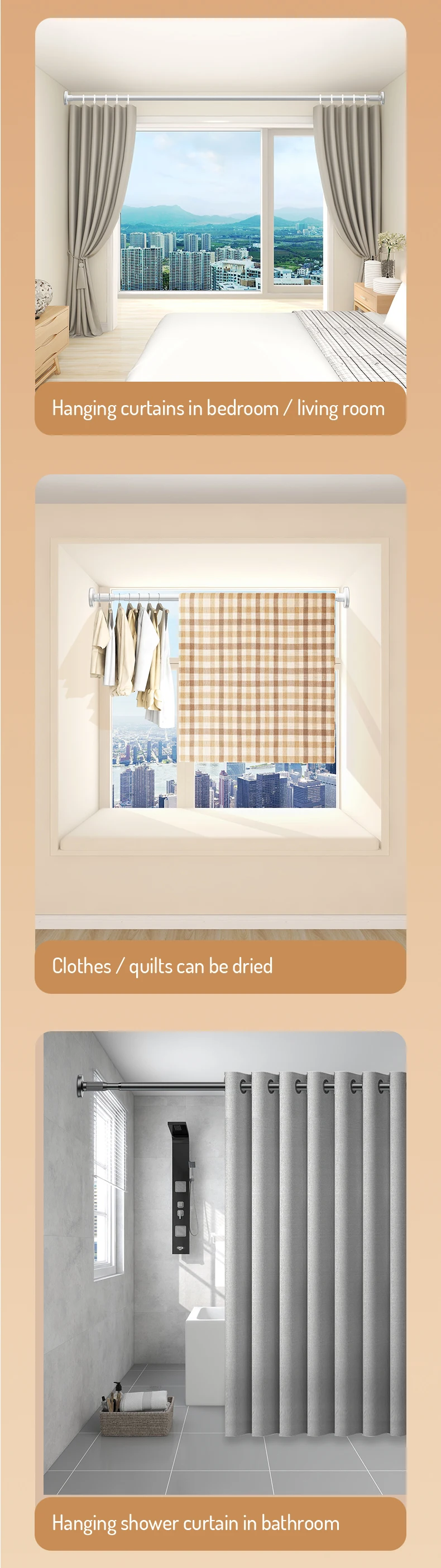 Curtain Hanging Rod for Bedroom and bathroom